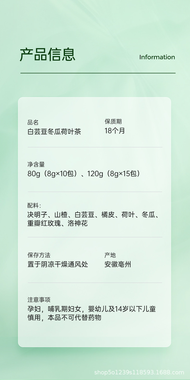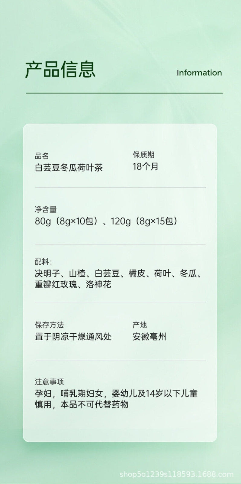 White Kidney Bean Winter Melon Lotus Leaf Tea Dietary Fiber Natural Detox Blend