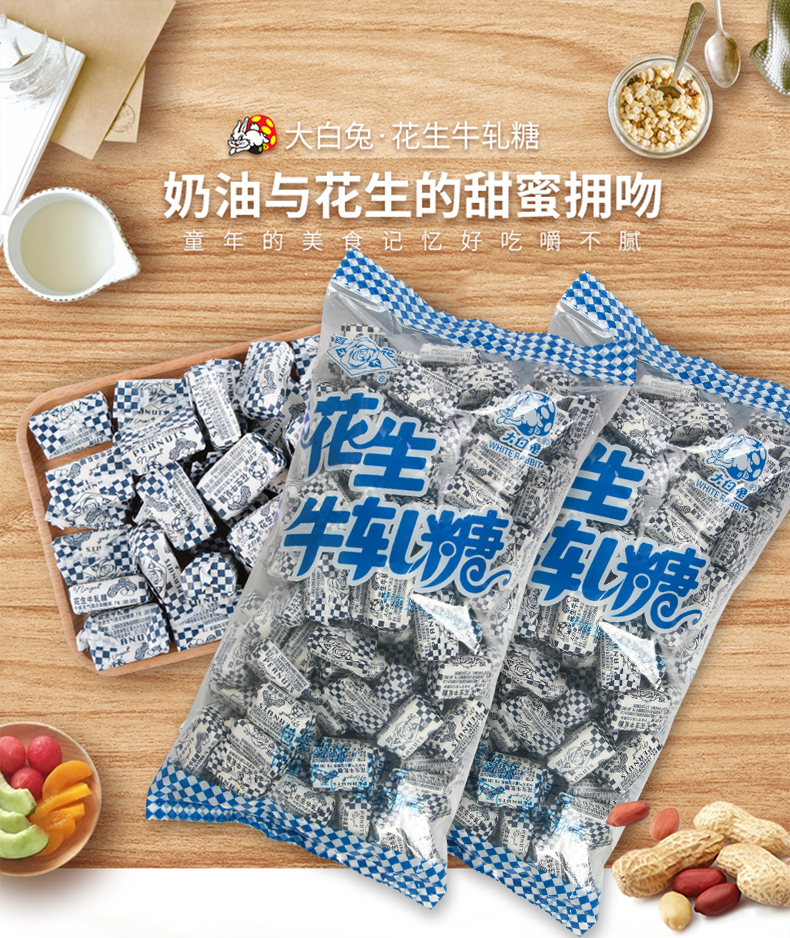 大白兔 花生牛轧糖500g 牛扎糖果 特产零食小吃Chinese Food Snacks Nougat with peanut Specialty