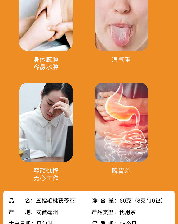 Wuzhishan Tu Fu Ling tea 10 packets * 8g triangle bag tea combination tea