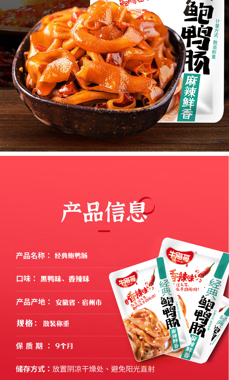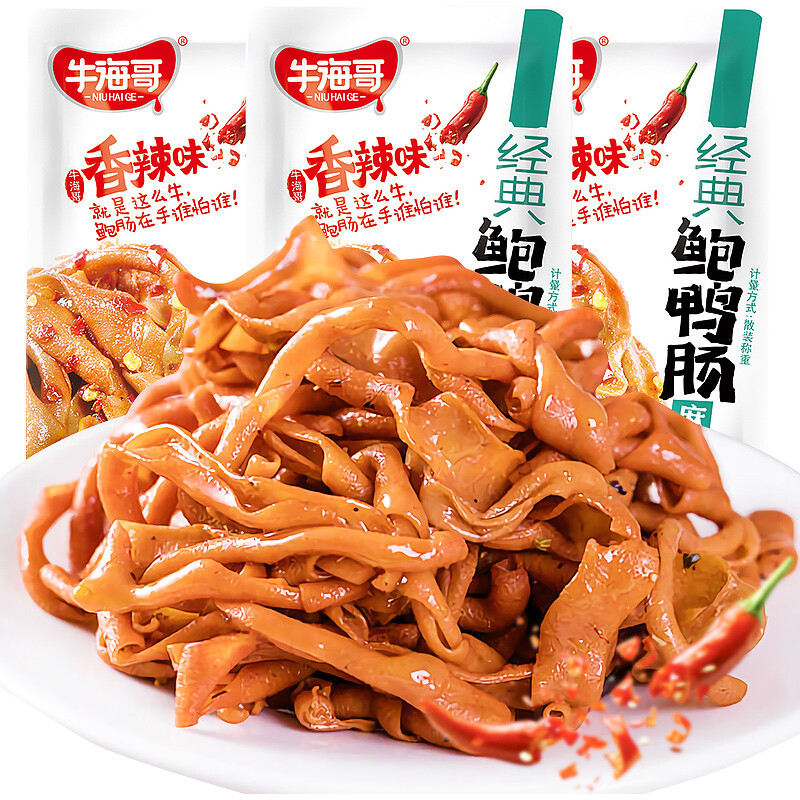Yachang Spicy Cooked Duck Intestines Snacks 40bags Mixed Flavor 牛海哥爆爽鸭肠