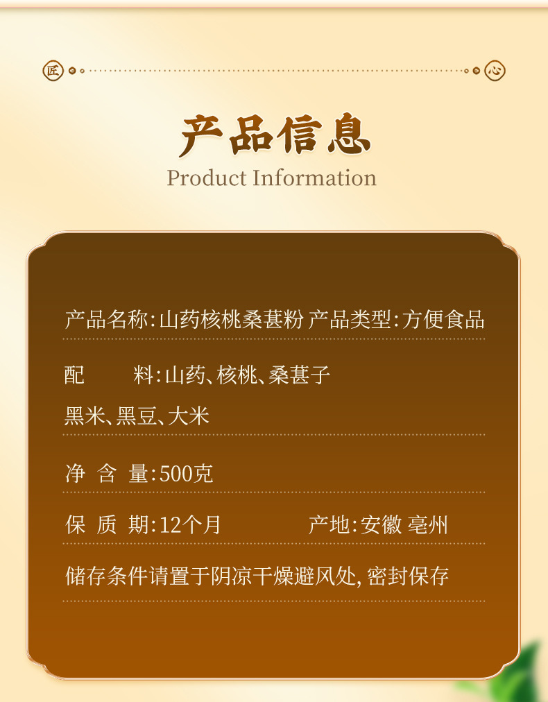 Yam Walnut Mulberry Black Bean Powder 500g for Hair Growth and Health