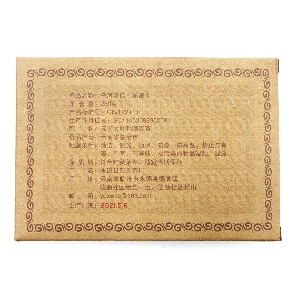 Product detail: Product name: Palace Puer Tea Brick Puer type: Ripe puer tea Production date: 2019/2021 Net weight: 250g/Pcs Origin: Yunnan, China Storage: Clean, airy, dry, avoid direct sunlight, no pollution, no strange smell Manufacturer: Xin Wen Tea Industry Co.,Ltd. Notice:Teas produced in 2019 and 2021 will be delivered randomly....