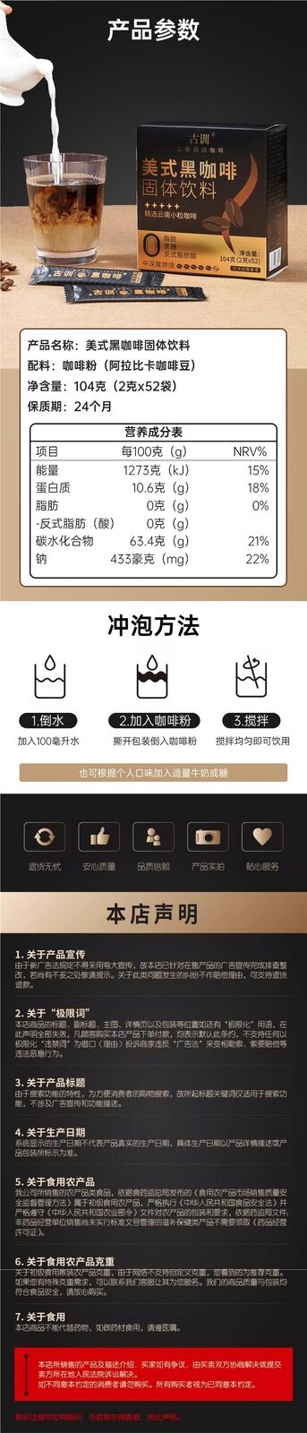 Yunnan Americano Black Coffee No Sugar Instant Arabica Beans Fitness Drink