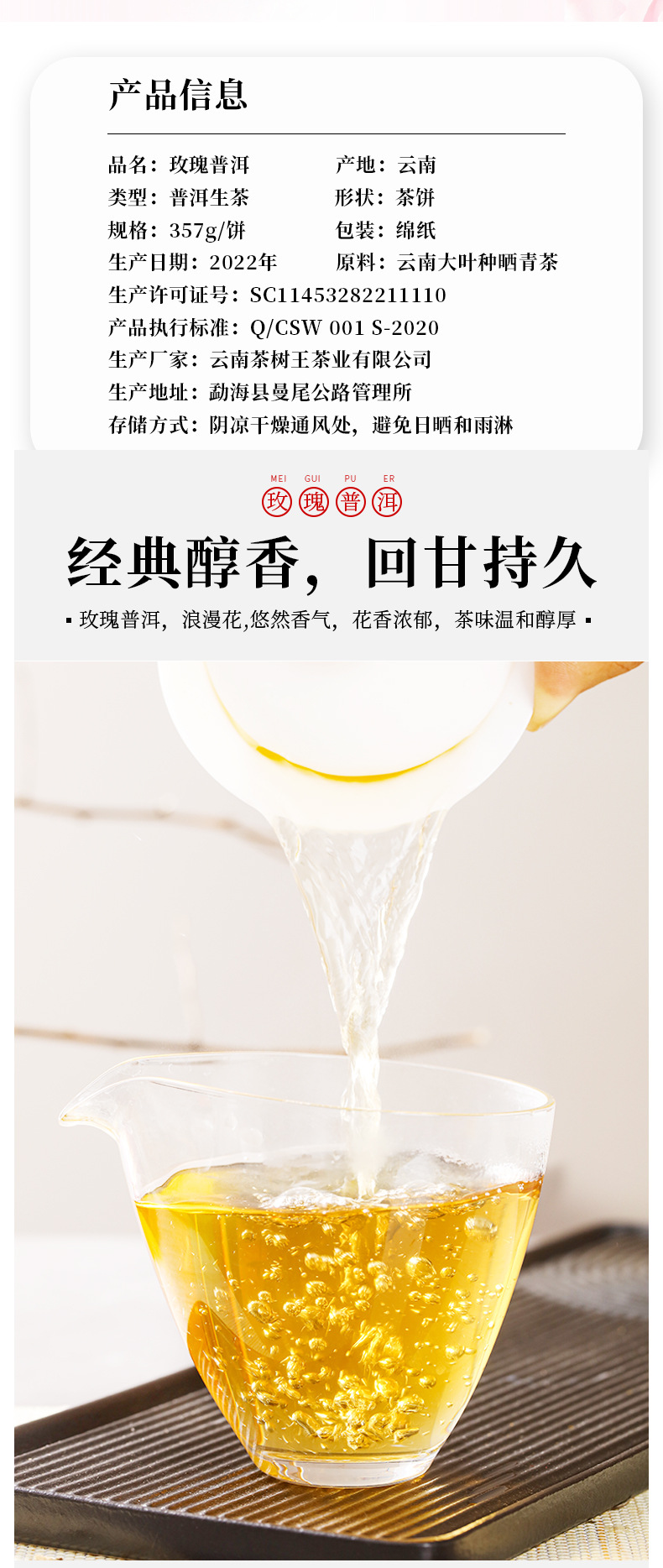 Yunnan Tea Tree King Raw Puerh Cake 357g Ink Red Rose Flower Aged Premium