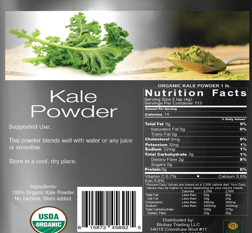 Condition:New: A brand-new, unused, unopened, undamaged item (including handmade items). See the seller's ... Main Purpose:Dietary Supplement Brand:HELLOYOUNG Active Ingredients:Kale Administration:Oral Type:Herb Form:Powder Formulation:Powder Ingredients:Kale Type of Diet:Vegan UPC:615872456925 eBay Kale Powder Organic 100% Pure 1.1 lb. Non-Gmo Superfood Organic Kale KALE POWDER ORGANIC 100% PURE 1.1 LB. ~ 17.6...