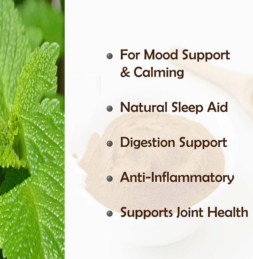 Lemon balm is known to be a natural sleep aid that promotes healthy sleep and mood. It’s calming effect may also help in reducing stress.  Lemon Balm (Melissa officinalis) is a perennial herbaceous plant in the mint family that can be found throughout the world. The leaves produce a delightful mild, minty lemon scent.  This is a 10:1 strength concentration extract powder. This means they use 10 lbs of whole herb to make 1 lb of powder, making it 10x times stronger than a straight 1:1 ratio powder. Lemon balm contains digestive enzymes that may aid digestion. It also has mild laxative effects and may help support digestive health. In addition, Lemon Balm has some anti-inflammatory properties and may help support joint health.