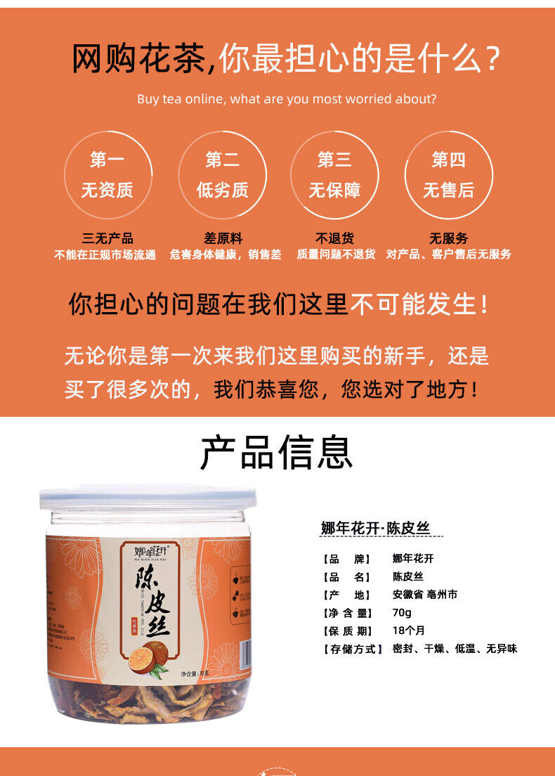 Peel shredded tangerine peel orange peel aged tangerine peel 70g/canned