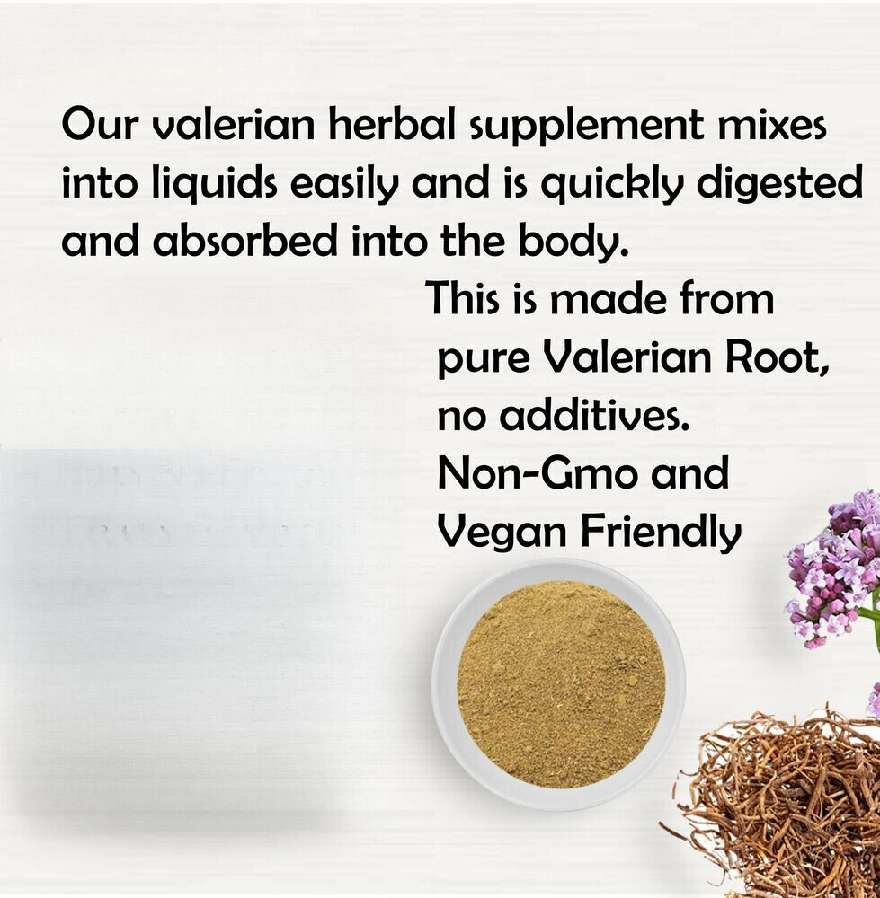 Valerian root extract 17.6oz. It comes from a perennial flowering plant that is native to Europe and Asia. The extract powder is taken from the root of the plant. It is a potent antioxidant. The botanical name is Valeriana Officinalis. This is made from pure Valerian Root.