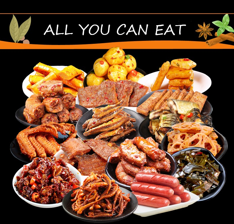 Snack list : Sauce squid, marinated duck wings, Pot-stewed Duck's neck, saury, octopus, sauce fish, special sauce lotus root, spicy diced chicken , special sauce kelp, fish bean curd, shrimp-roe, sausage, vegetarian meat, fish rolls, tofu, fish ball etc(The above snacks are randomly packed, a total of 40 pieces -