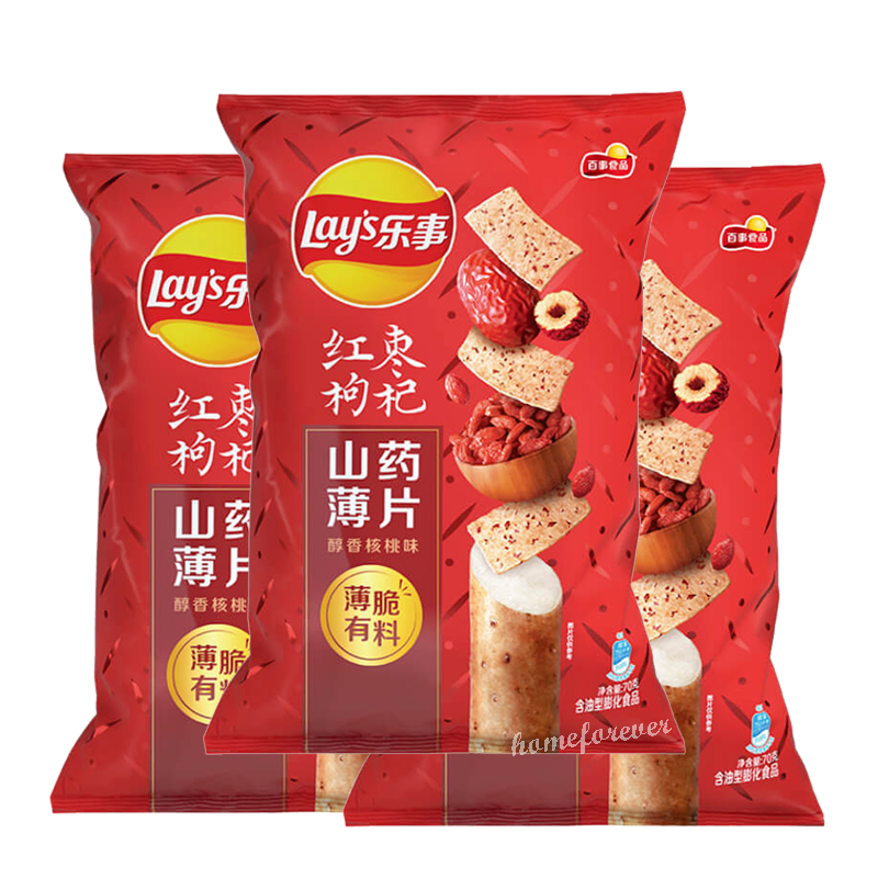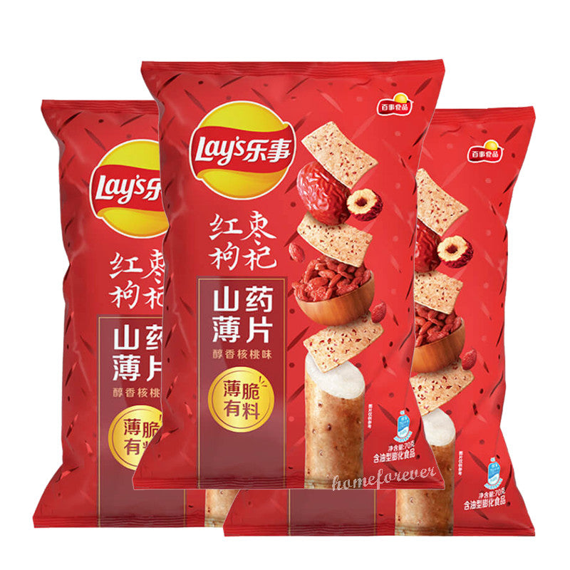 3 Bags Lay's Chinese Jujube Goji Yam Chips Casual Snack Food 乐事红枣枸杞山药薄片