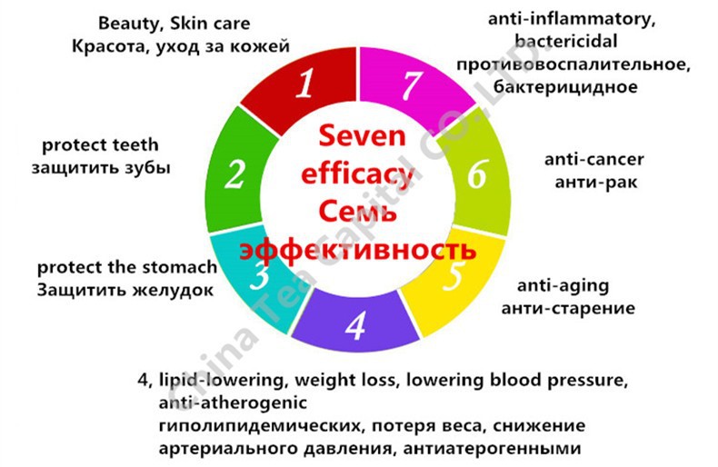 Catechin of the tea has the effect of anti-decrepitude. Total amount of catechin content of Yunnan big leaf species tea is higher than other tea species. The effect of anti-decrepitude is better than other kinds of tea. At the same time, during the process of Pu’er Tea, macromolecular polysaccharide transforms into a great deal of new dissoluble monosaccharide and oligosaccharide. The vitamin C increases doubly, which has an important effect to improve the human being’s immune system and preserve health, strengthen body and prolong longevity.