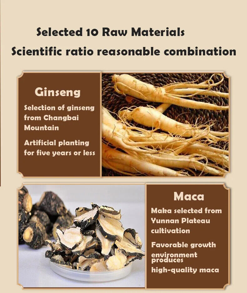 Gorgon euryale seed,Red jujube, maca slices,Chinese yam,pueraria lobata,mulberry fruits,Goji Berry, Raspberry, rhizoma polygonati,Ginseng (artificially planted for less than five years)