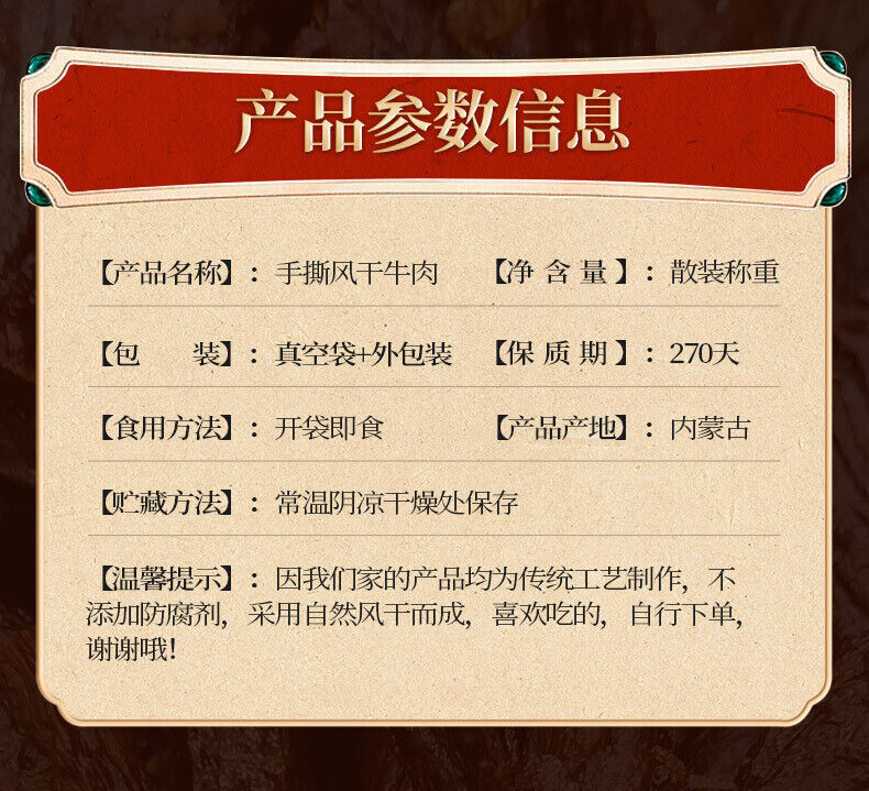 Hand-Torn Air-Dried Beef Jerky Inner Mongolia Traditional Snack Protein Food