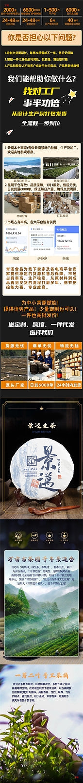 Jingmai Pu'er tea, raw tea, Yunnan Qizi cake tea, Pu'er ancient tree tea