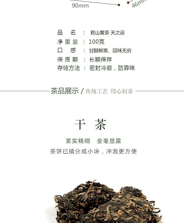 Premium Hunan Jun shan Huang Cha Pressed Nuggets Jun Shan China Yellow Tea 100g |
