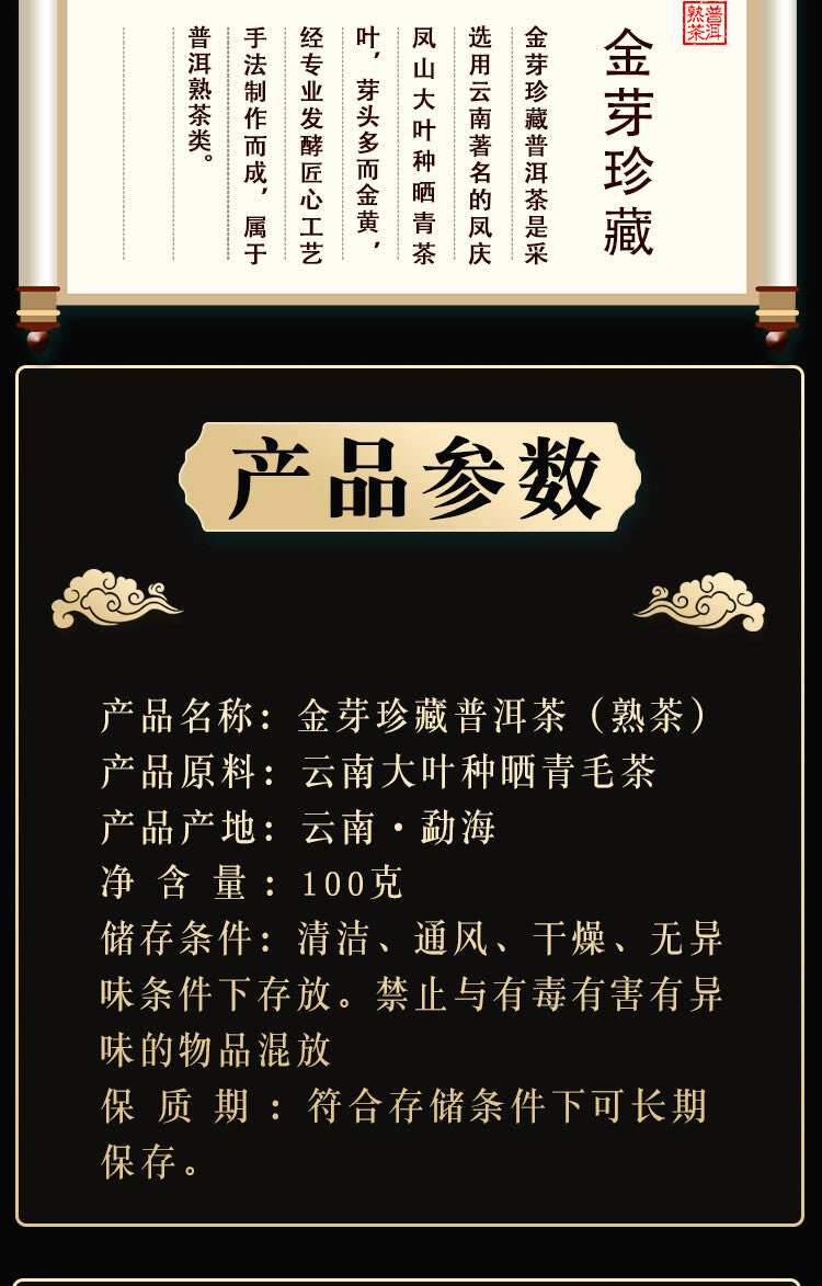 Premium Yunnan Pu-erh Ripe Tea Cake 100g Golden Buds Royal Collection