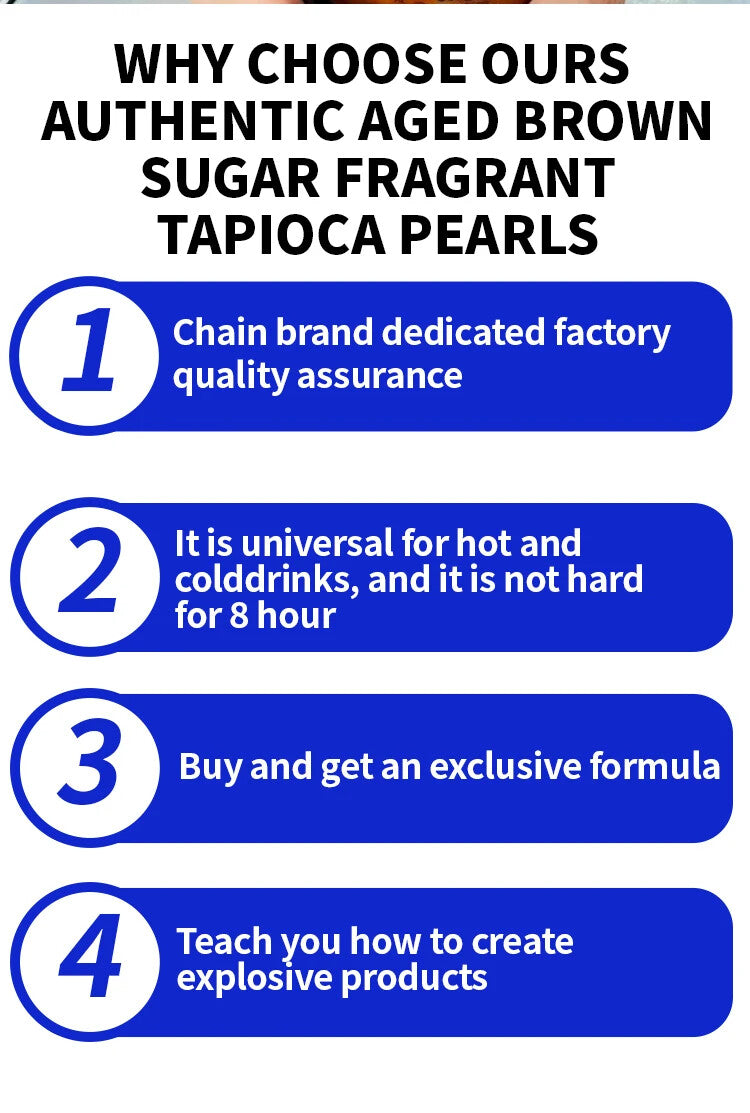 Click here for a chance to get free sample Products Description Primary Ingredient Brown sugar tapioca pearls Certifications ICRT, MSDS Packaging Bag, Carton, Bottle, Pouches Shelf Life 6 Months Storage instructions Keep in a cool, dry place Our four main business Recommend Products Certifications