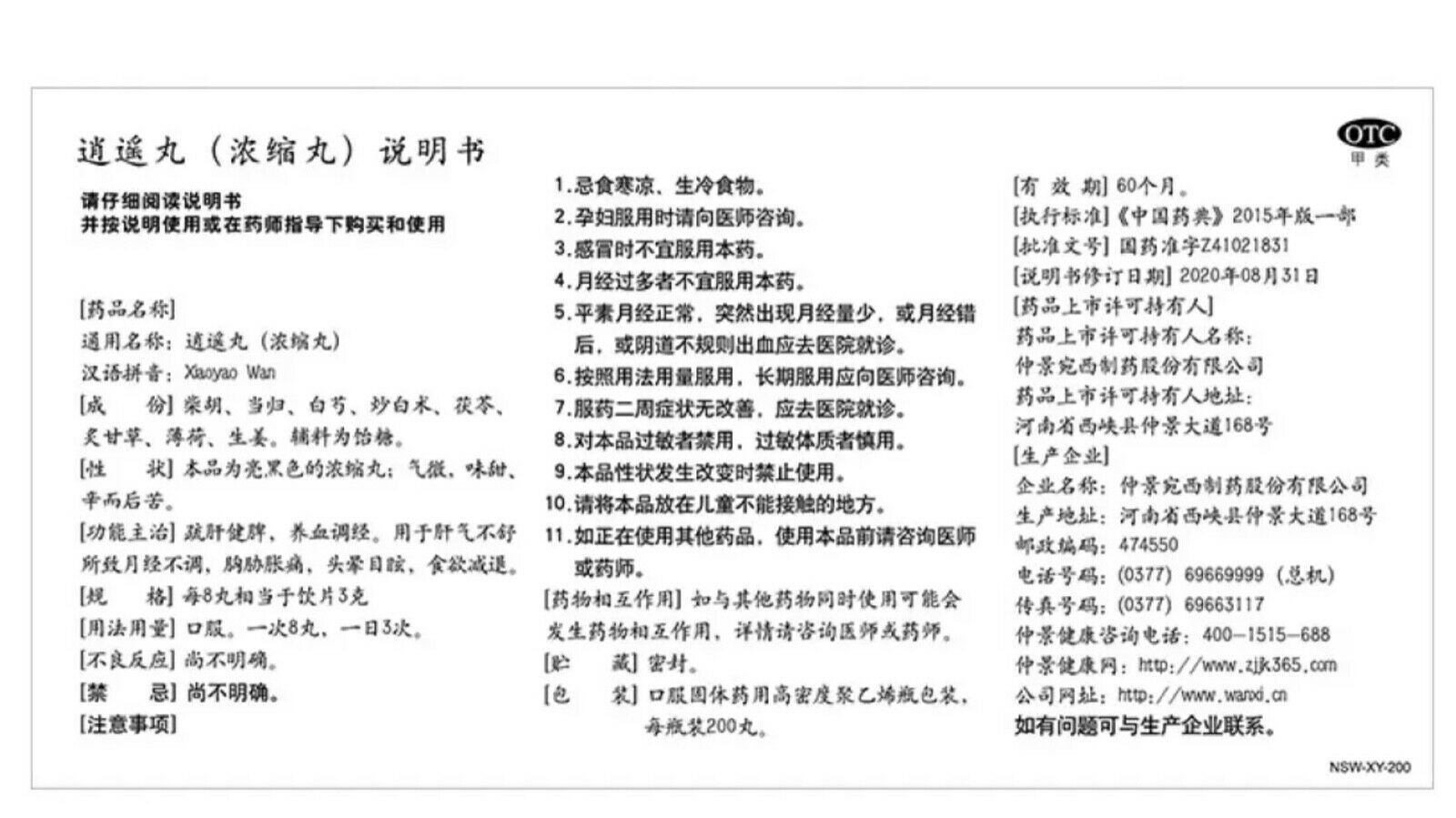 Xiaoyao Wan (200pc/btl) "仲景“ 逍遥丸 (200丸/瓶)