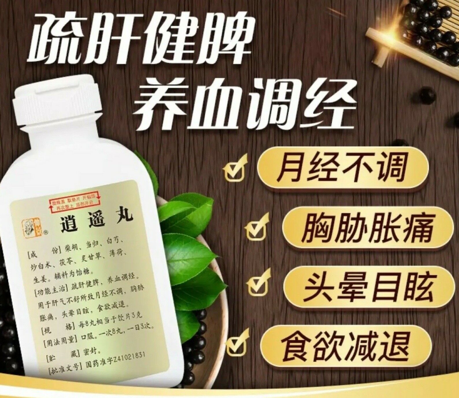 疏肝健脾,养血调经。用于肝气不舒所致月经不调,胸胁胀痛,头晕目眩,食欲减退。