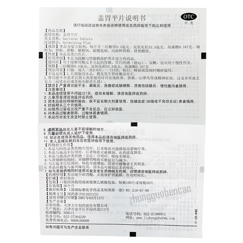 Lisheng Gaiweiping Pian 力生盖胃平片