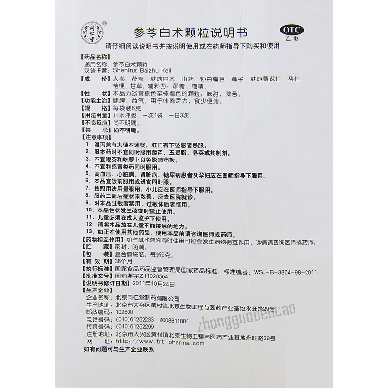 Tongrentang Shen Ling Bai Zhu Ke Li Tongrentang Shenling Baizhu Keli同仁堂参苓白术颗粒