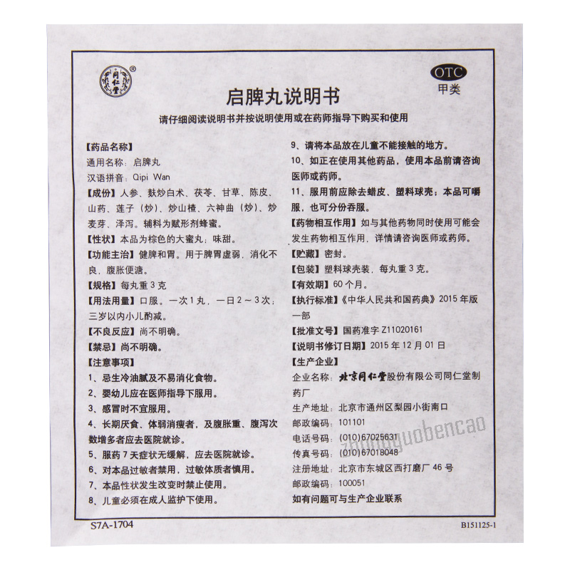 Tongrentang Qipi Wan 同仁堂启脾丸