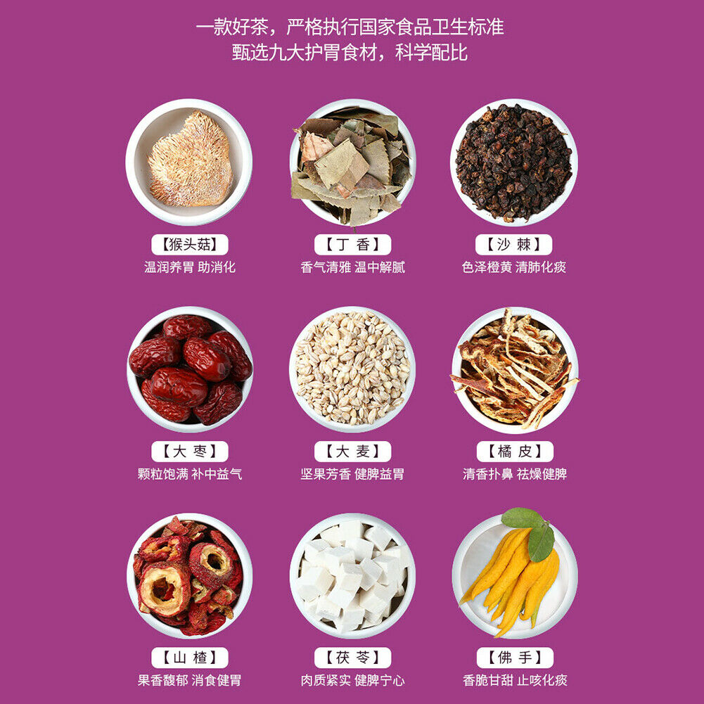 Tongrentang Hou Tou Gu Sha Ji Ding Xiang Cha Yang Wei Cha同仁堂猴头菇沙棘丁香茶养胃茶5g*30小袋