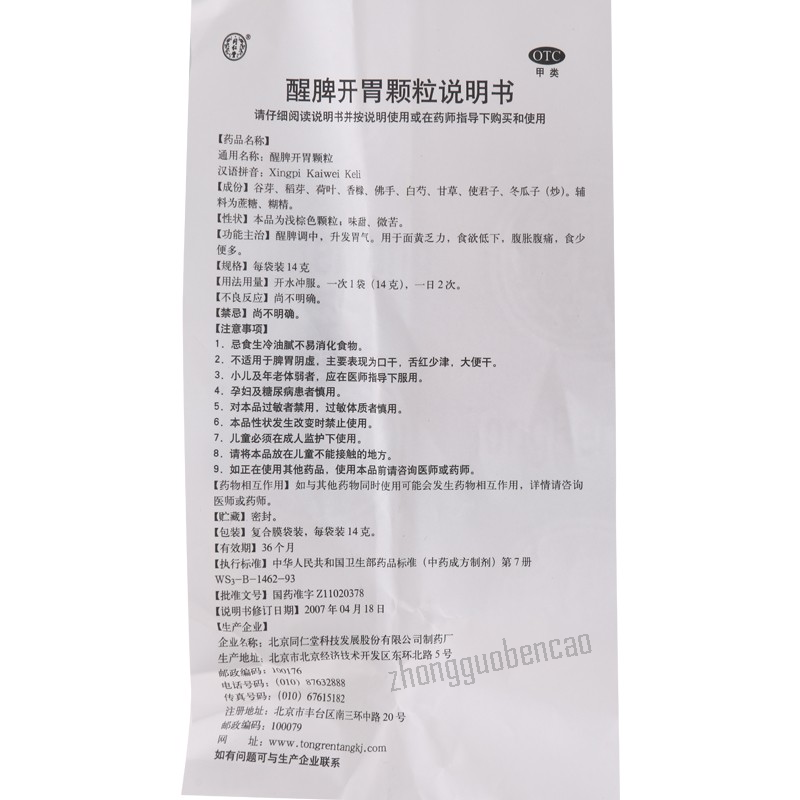 Tongrentang Xingpi Kaiwei Keli 同仁堂醒脾开胃颗粒