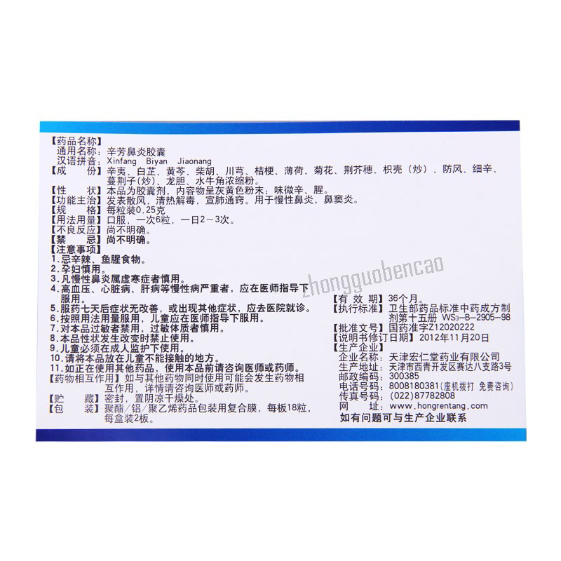 Honghua Xinfang Biyan Jiaonang 宏仁堂红花辛芳鼻炎胶囊