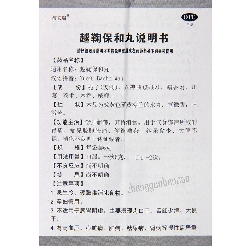 Haianrui Yueju Baohe Wan 海安瑞越鞠保和丸