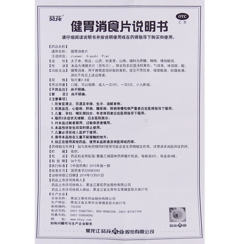 Sunflower Stomach Relieving Tablets 0.8g*32 Tablets/box OTC 葵花 健胃消食片 0.8g*32片/盒 OTC