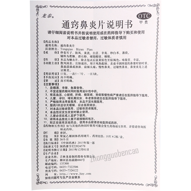 Longtai Tongqiaobiyanpian 龙泰通窍鼻炎片