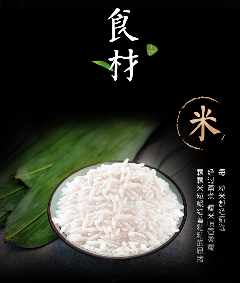 Food Name: Fresh Meat Zongzi (Vacuum Packaging) Product classification: Filling type Ingredients list: glutinous rice, drinking water, pork, etc Storage conditions: Store at room temperature in a dry place Shelf life: 270 days Net content: 140g/piece Edible method: water boiling and heating method ① After unpacking, put Zongzi into boiling water (immerse Zongzi in water) ② Under normal pressure, let the water boil again for 15-17 minutes until the Zongzi is thoroughly boiled ③ Remove the zip ties and peel off the zongzi leaves before consumption. It can also be steam heated or microwave heated. Attention: If the vacuum packaging bag is damaged or swollen, please do not consume it.