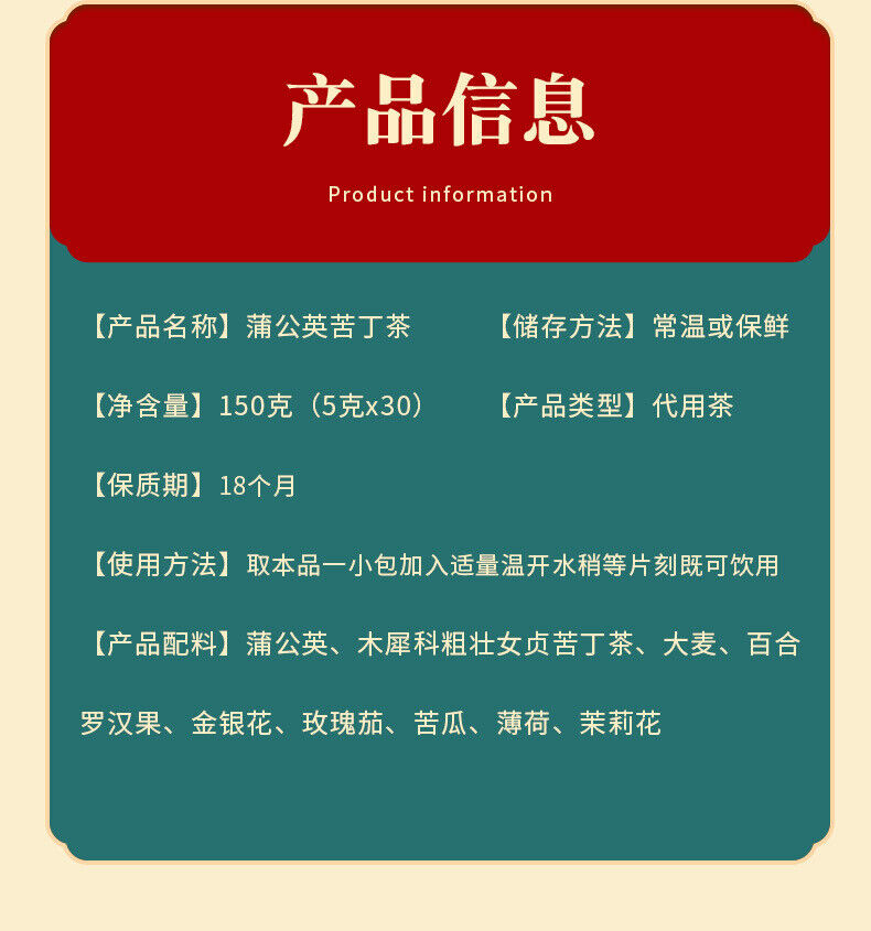 150g Dandelion bitters tea bag infusion tea health herbal tea honeysuckle tea