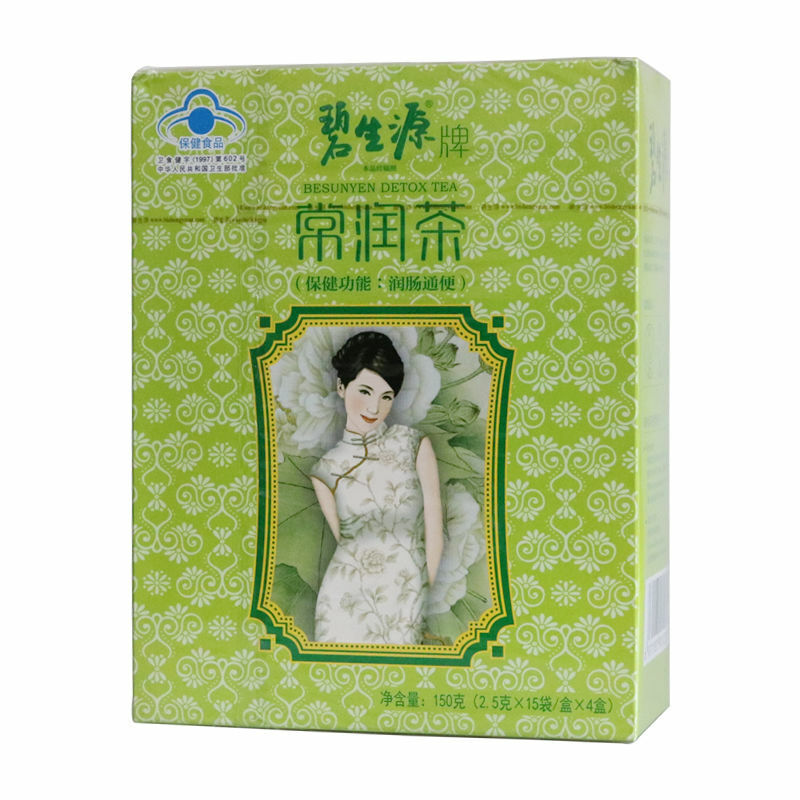 Bi Sheng Yuan Enteric canal-Cleaning Tea Package: 2.5g* 60 bags, Total a box 150g, The tea can continue to promote intestinal secretion secrete to soften dry adhesion on the intestinal wall and make them drop off and excrete smoothly. It is help to moisture and repair the intestinal damage through the biological components. Drink a week you will be able to feel the protective film in the intestinal wall is being built,and creep strength increased. The product suitable for all types of constipation symptoms, including refractory constipation (including diabetes, constipation) have significant effect. The long-term drinking can change "dry astringent-type constitution" conditioner for healthy "moisture-type constitution."