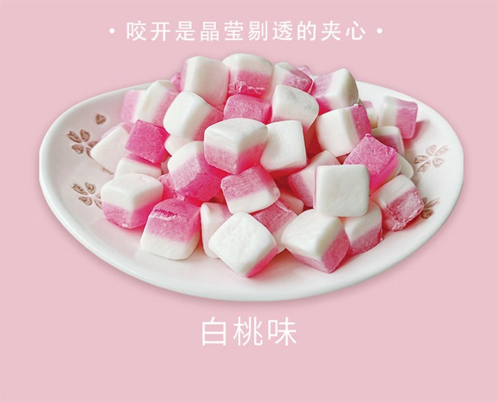 150g Juice Flavored Snack Heart Filled Soft Candy White Peach Strawberry