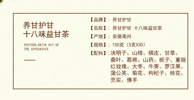 150g Liver care 18 flavors Yi Gan tea sunset protection tea health care bag tea