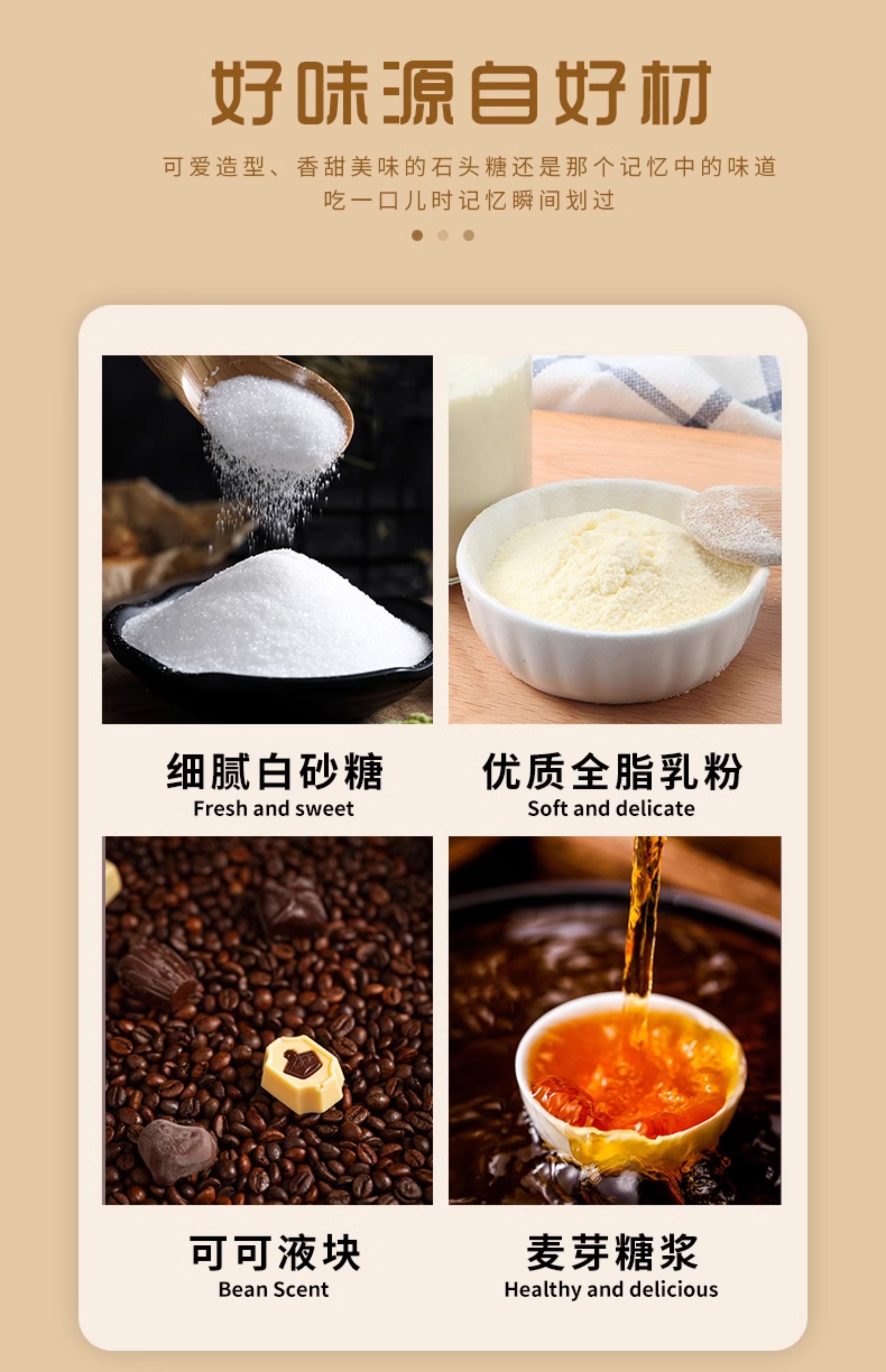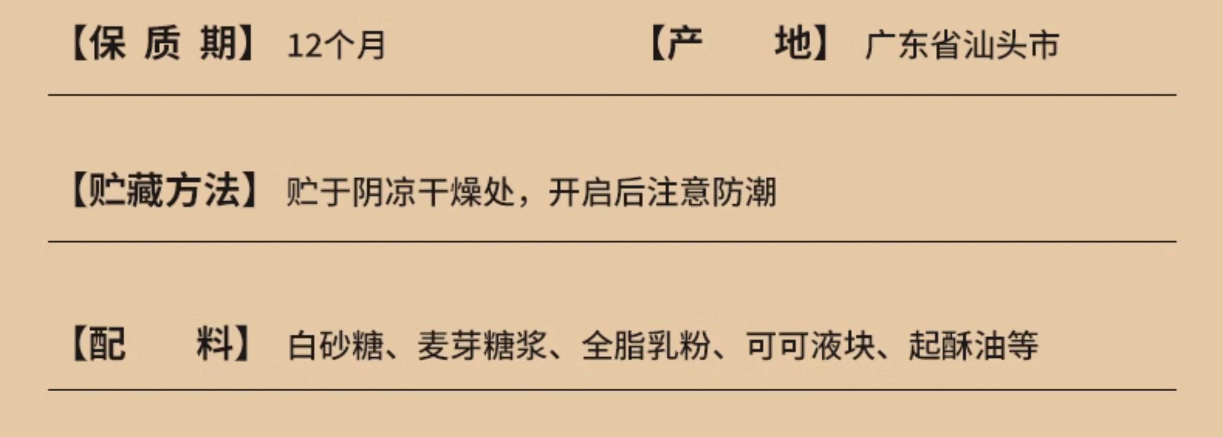 配料表:白砂糖,麦芽糖浆,可可液块等