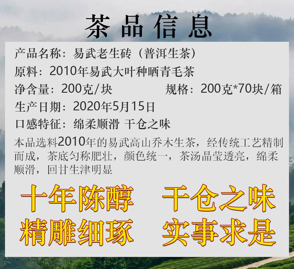 200g YunNan Pu'er Old Tea Brick Tea Yiwu Old Raw Tea Aged Pu'er Raw Tea Brick