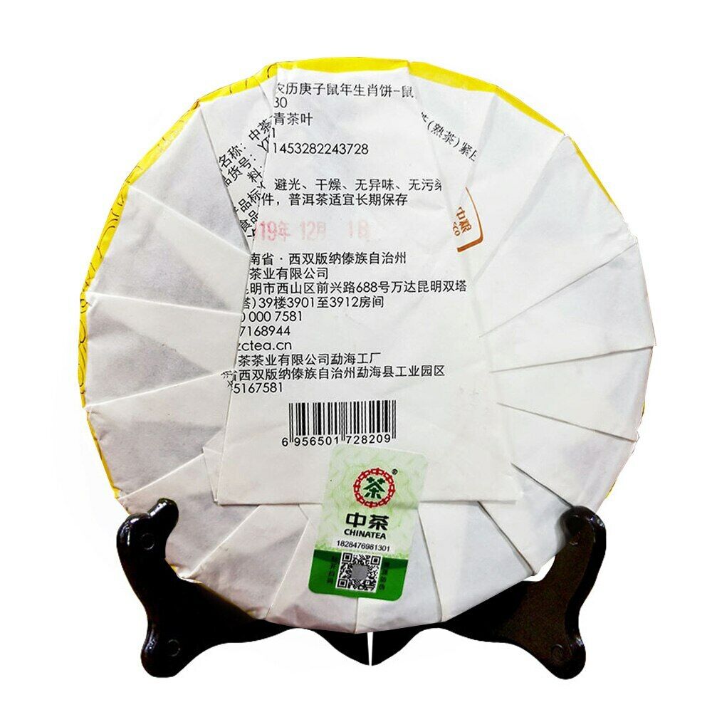 This "Year of Rat" puer tea cake, was made for chinese calendar 2020 year, selected thea raw material of Bulang and Yiwu area, hand pressed, abd steamed, dried by Menghai tea factory.