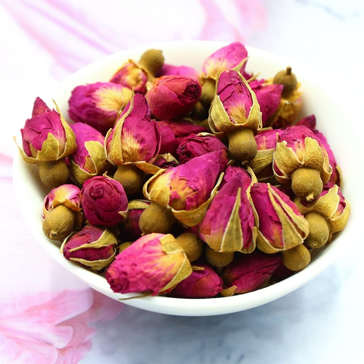 • 【Superior Quality】Our rose buds are completely edible and perfectly meet your all kinds of cooking demands. We only selected the young buds and dried them under low temperature, which can effectively retain the scent of roses and preserve the nutrition well.