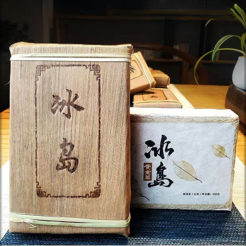 250g Iceland Puerh Raw Tea Brick Golden Leaves Pu-erh Sheng Tea Yunnan Pu'er Green Tea