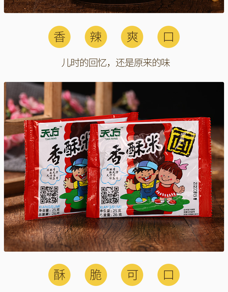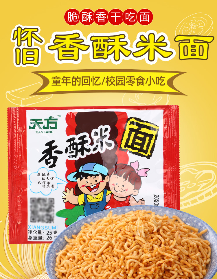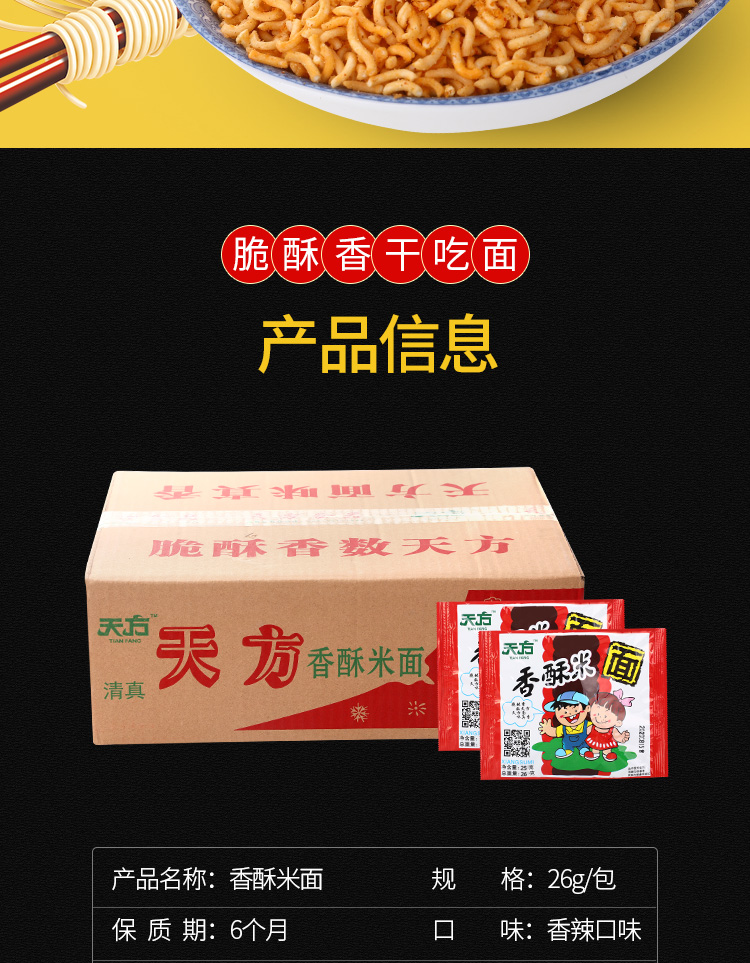 25g*10 bags XiangSuMi Crispy rice instant noodles snacks spicy dry noodles 天方香酥米