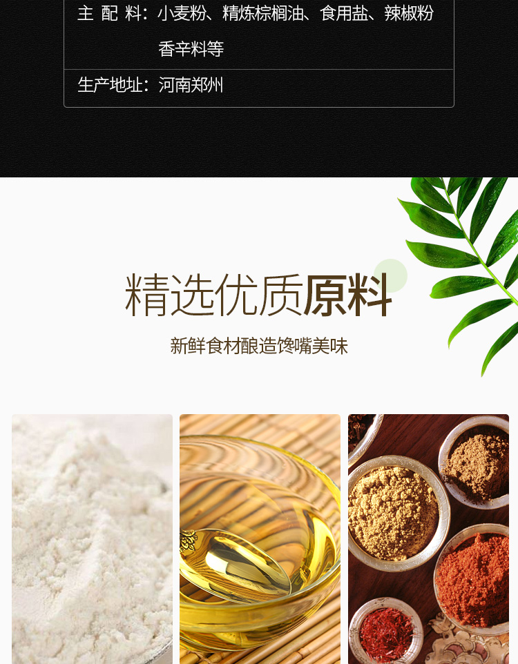 配料表:小麦粉,棕榈油,食用盐,辣椒粉等