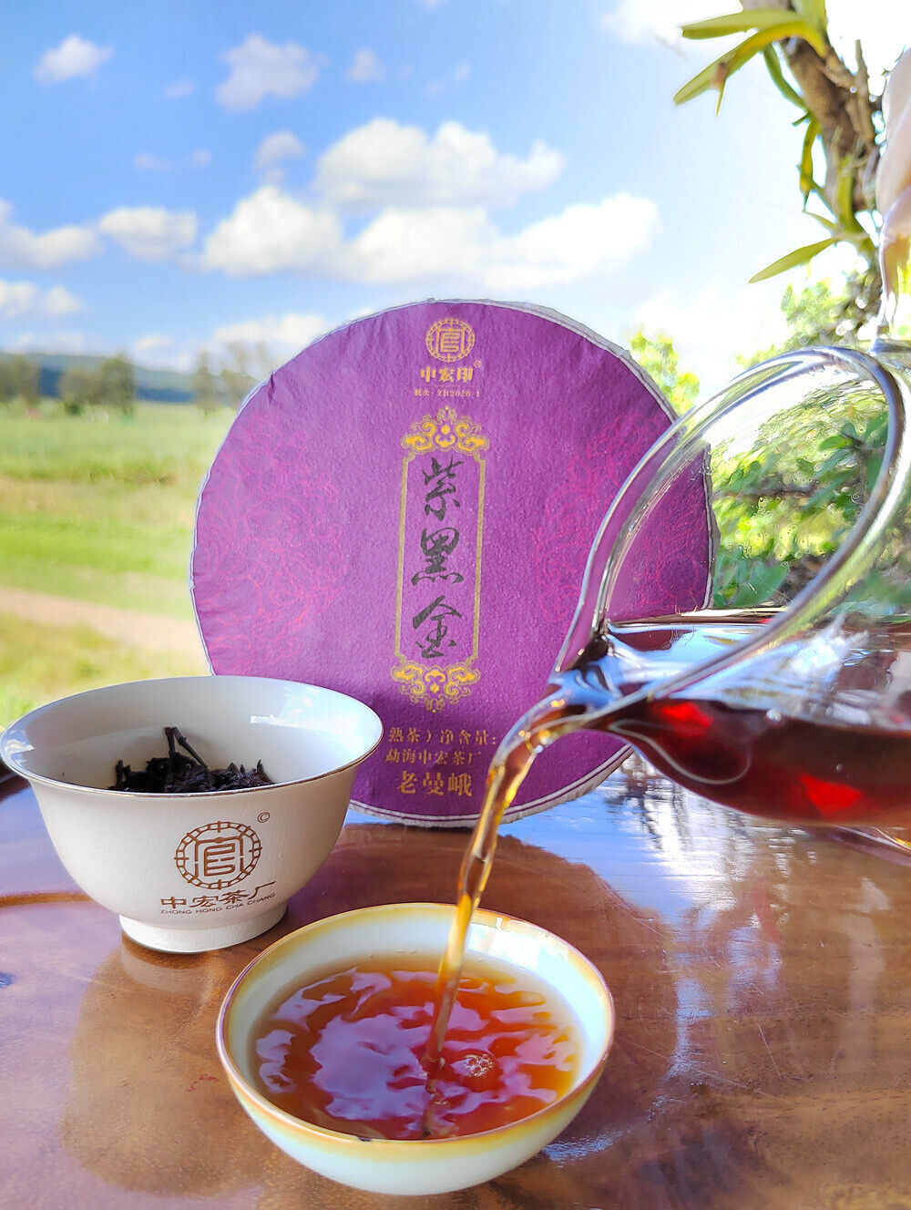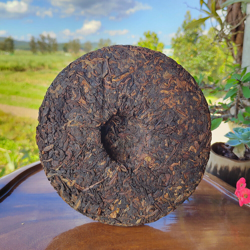 357g Lao Man'e ancient tea Menghai seven cakes ripe Brown Mountain ripe tea cake
