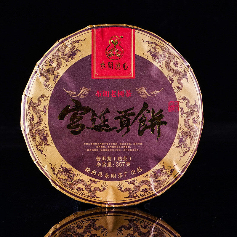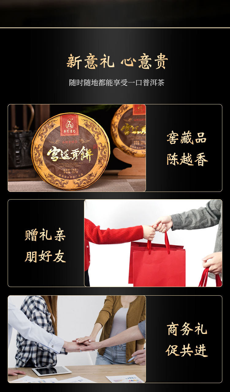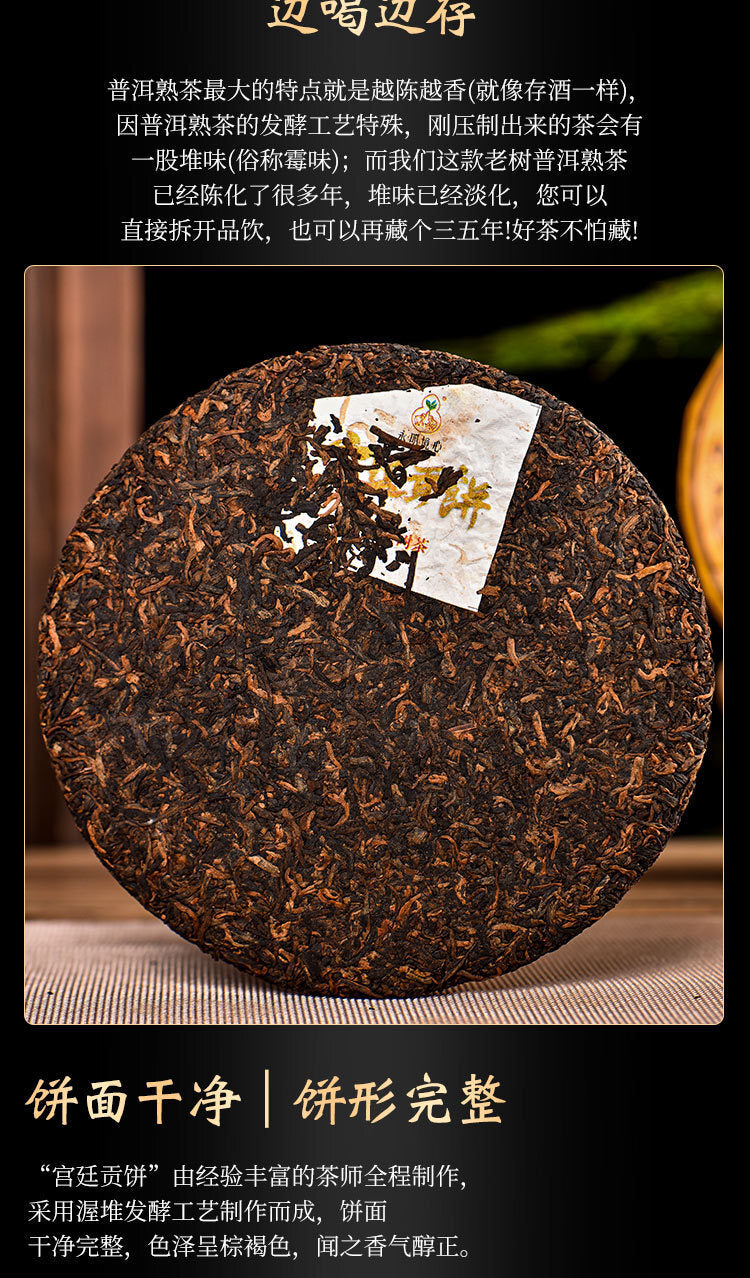 357g Pu'er Ripe Tea Ancient Tree Imperial Tribute Cake Yunnan Menghai Qizi Cake