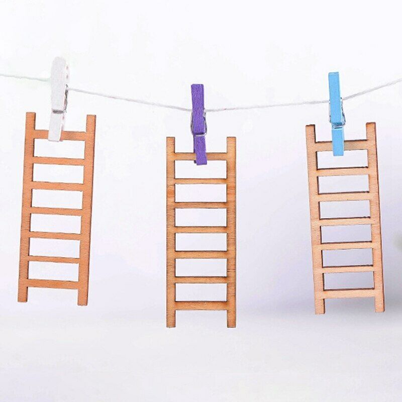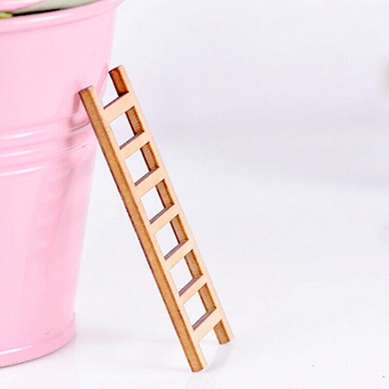 3pcs Mini Wooden Step Ladder Furniture Tools Fairy Garden Miniatures Decoration