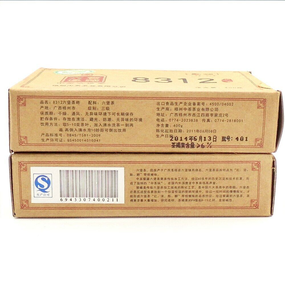 400g Top Zhong Cha Dark Chinese Tea Brick 8312 Liupao Tea Hey Cha Liu Bao