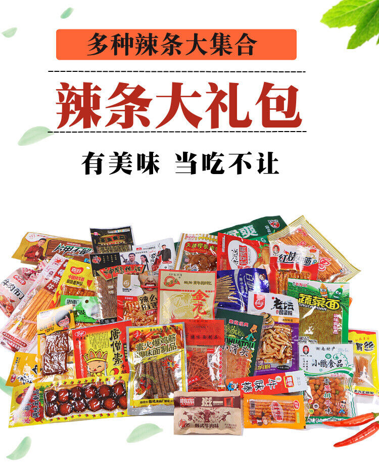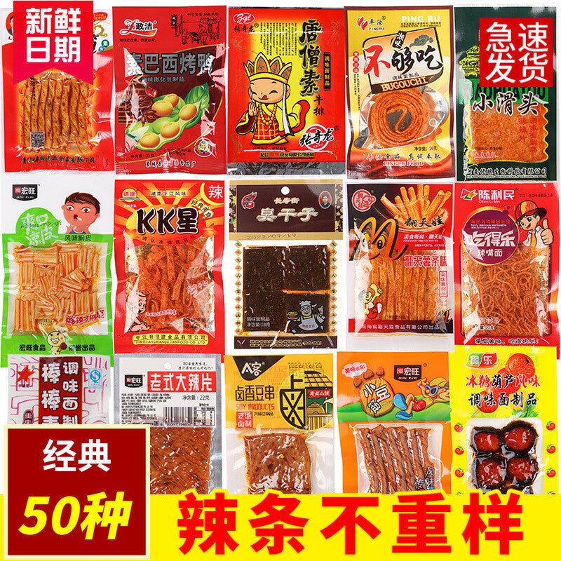 50 Assorted辣条大礼包 50 Bags Economical Spicy Snack Gift Pack – Unique Spicy Strips