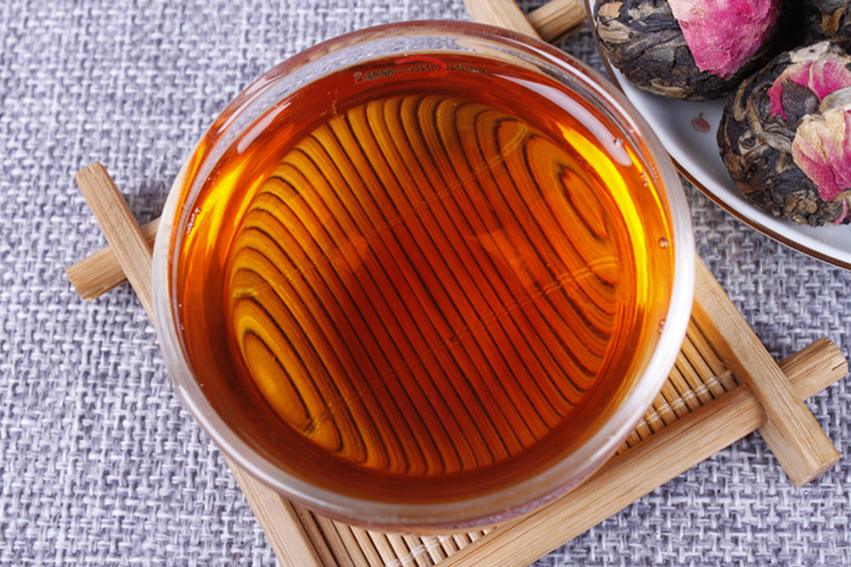 茶引花香,花增茶味——茶汤入口,质感厚重,滋味饱满丰富,香气浓郁,且香入茶汤,二者相生相伴,业界素称“落水花香”,细细闻之,花蜜香中饱含玫瑰的隽永与清丽,令饮者身心愉悦,甜润适口,甜甜蜜蜜,香醇欲醉
